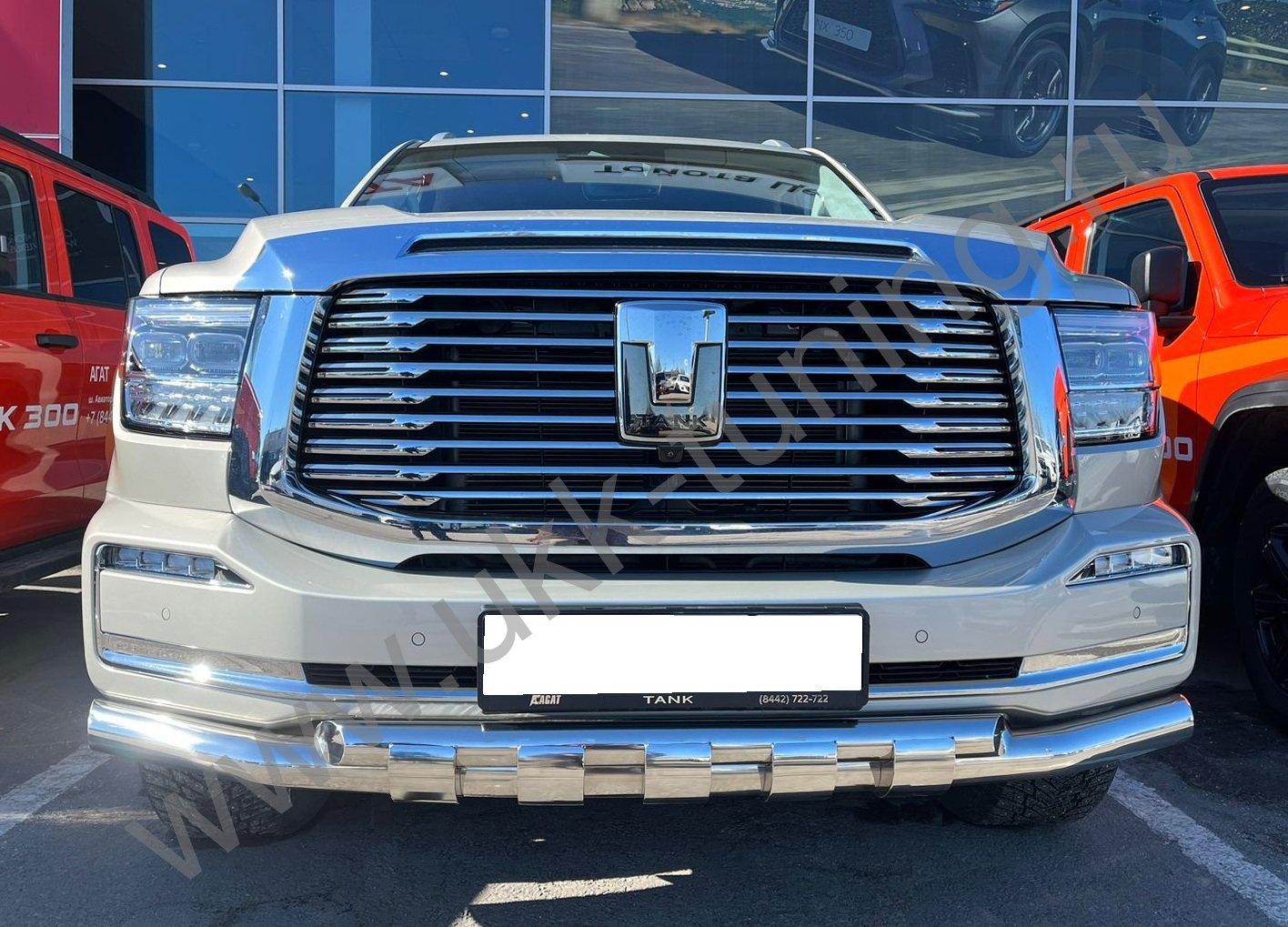 Защита переднего бампера двойная с перемычками покрытием "раптор" Tank 500 с 2023